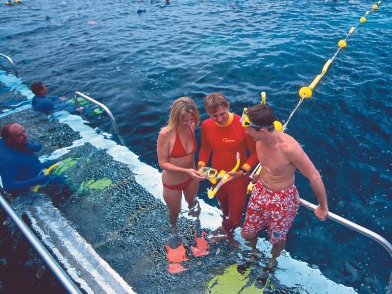 Please reconfirm your booking and pick up location with Quicksilver Cruises on (07) 4087 2100 at least 24hours prior to departure. Pick up is from your hotel location ā please advise when booking. Includes: Morning and afternoon teas on board, reef presentation by marine biologist, hot and cold tropical buffet lunch, and all snorkelling equipment provided, qualified snorkelling safety officers on hand, underwater observatory fish & coral viewing, coral viewing by semi-submersible vessels & fish feeding is conducted by crew. Excludes: Introductory and Certified Scuba Diving, Ocean walker Helmet Diving, Guided Snorkel Tour with a marine biologist & Scenic helicopter flights. EMC: An Environmental Management Charge of $6.50 is levied on all adults and children entering the Great Barrier Reef Marine Park. This charge is included in the above Nett Rates.