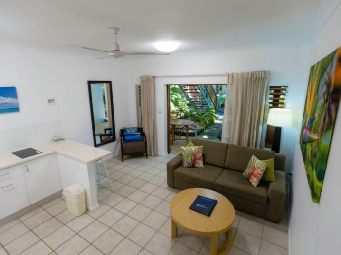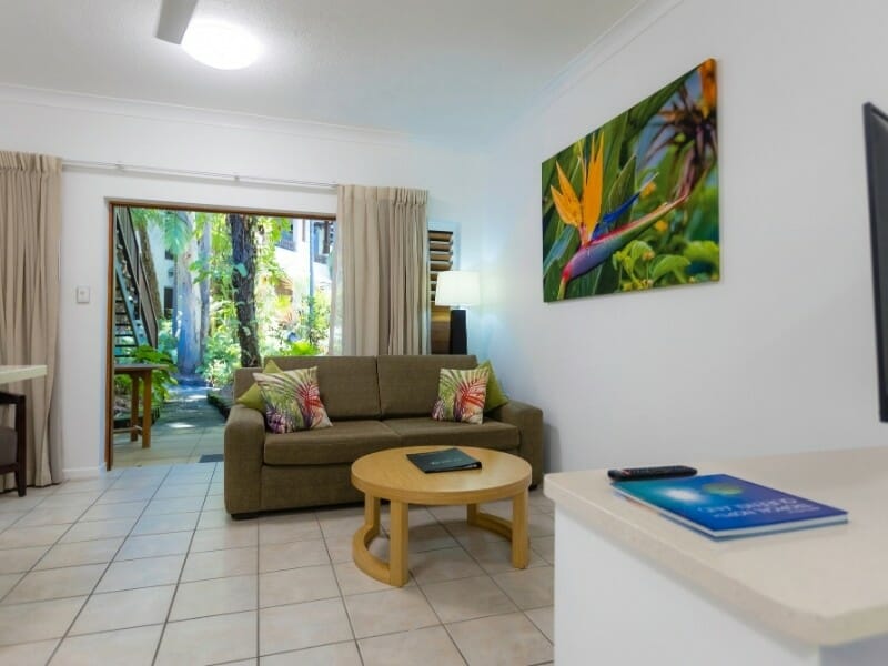 Recognised as one of “Australia’s Top 10 Most Romantic Destinations,” The Reef Retreat Palm Cove is a boutique apartment complex. This 4-star property is overlooking the sandy beach and lush gardens. The apartment’s great location in Palm Cove, which has a collection of upscale cafés, boutiques and spas, makes it easy for everyone to visit many local interests.